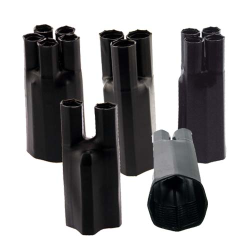 Insutek KHB series of Heat Shrink Breakout boot, is made from radiated polyolfine with inner adhesive, it can provide strain relief and environmental/mechanical protection for breakouts in multi-conductor armored or cable terminations up to 36KV.